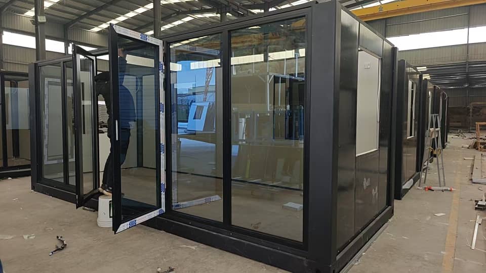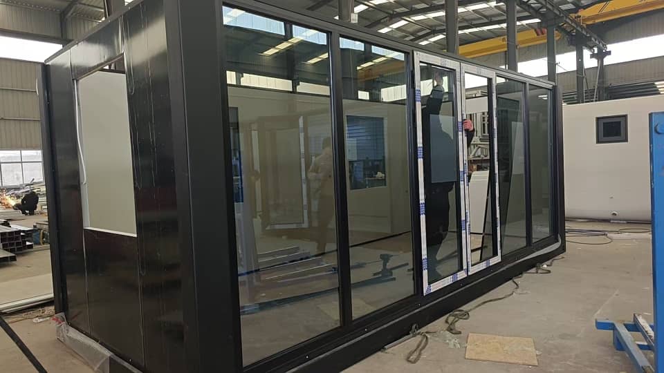 - La Tiny House plegable cuenta con fachada principal vidriada completa, 2 ventanas laterales y 2 ventanas posteriores, diseñados para proporcionar una mejor visual y permitir la entrada de luz natural, creando un ambiente luminoso y agradable.